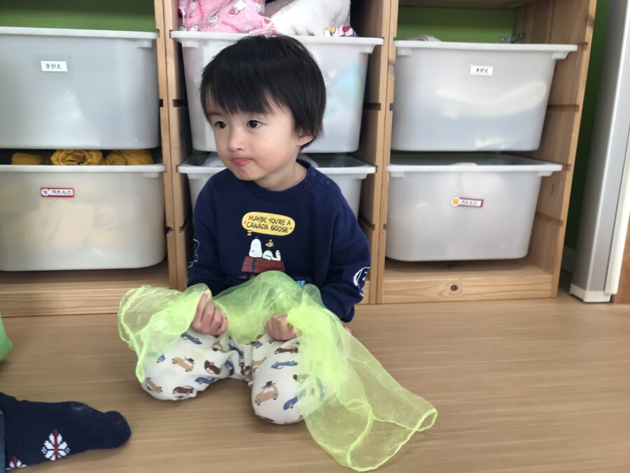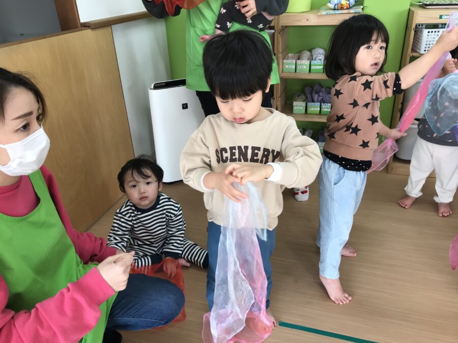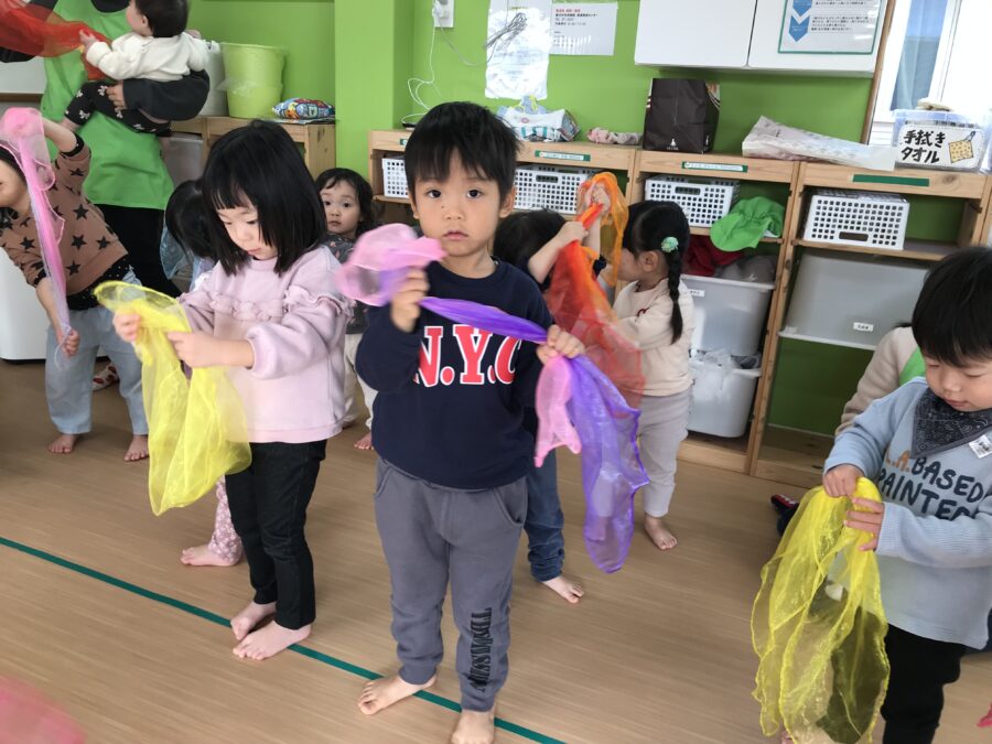 スカーフを使い凧揚げを表現🪁