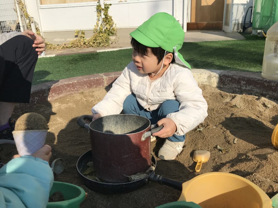 寒い日でも砂場ではアイスクリーム屋さん🍨