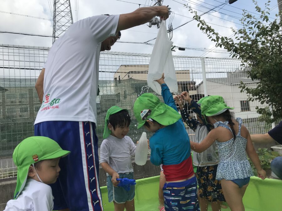 みんなで力を合わせて水を入れたよ😆