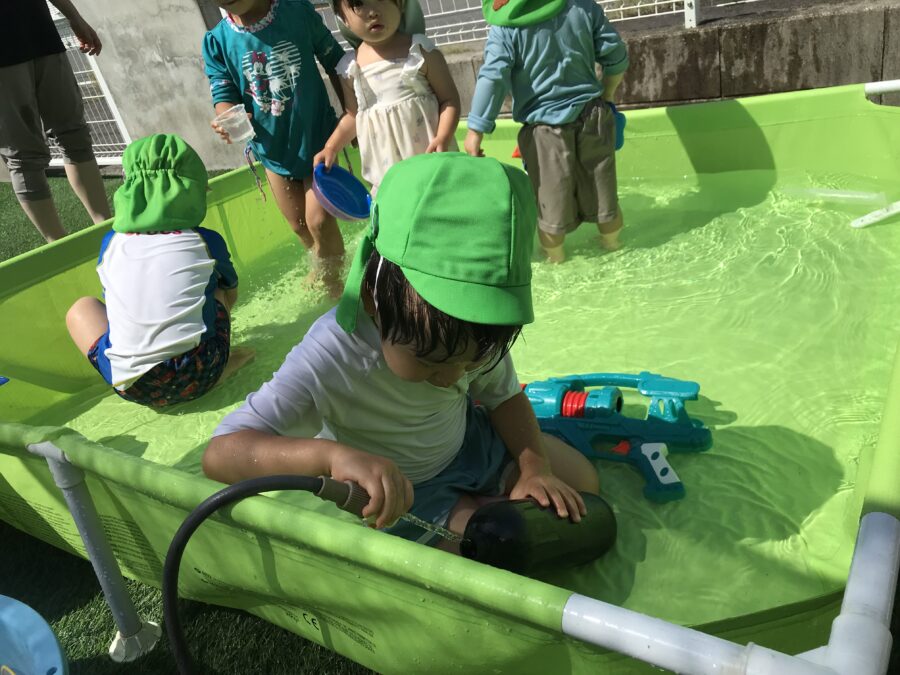 リトミックの後はプール遊び😊