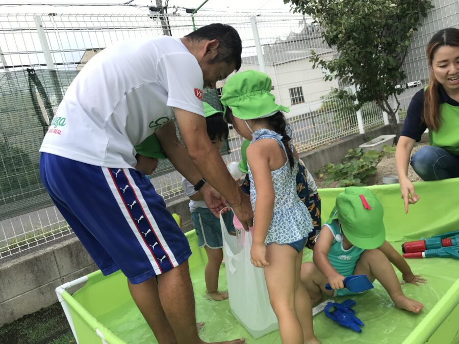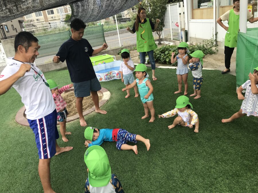 講師の先生と一緒にプール遊び😊