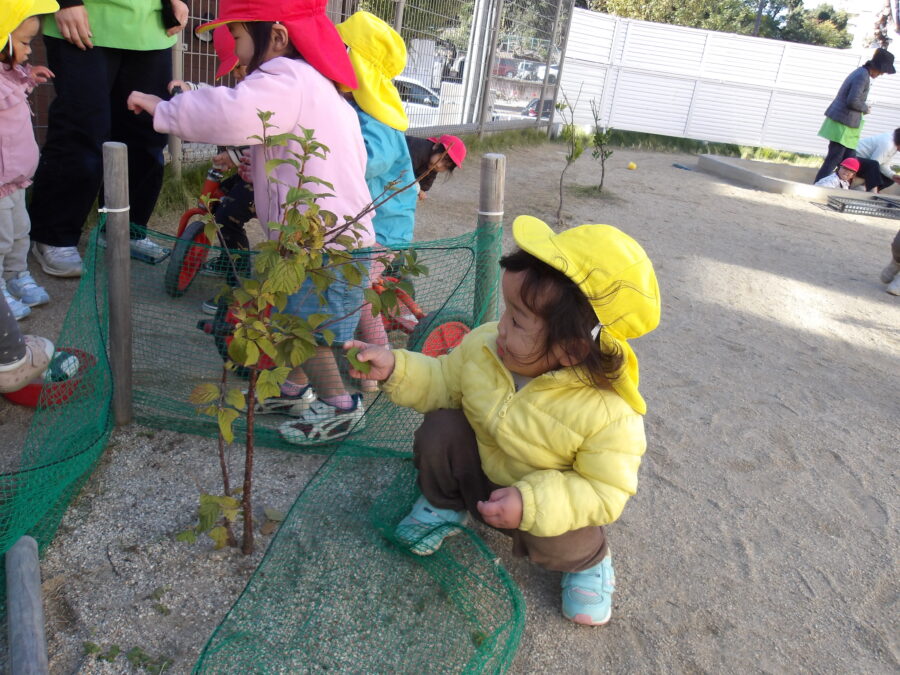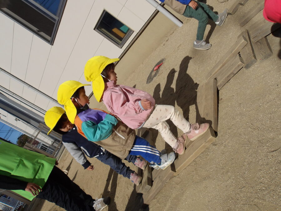 園庭に出ると陽が当たる所はとっても暖かく、丁度良い気候でした。