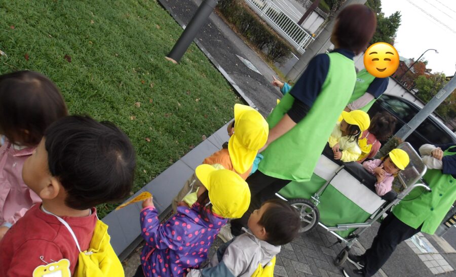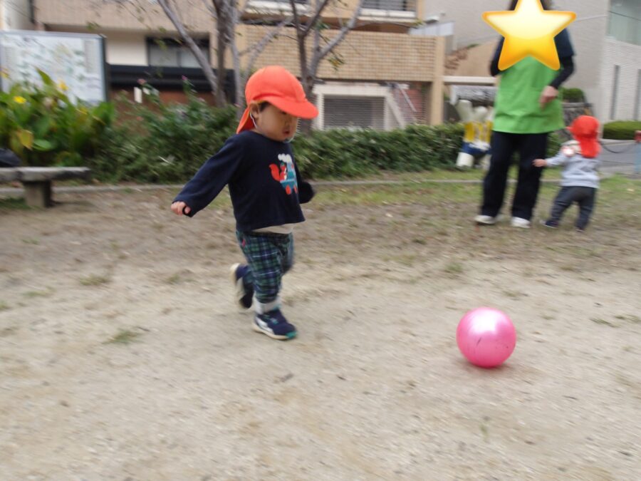 今日は久しぶりに西山公園までお散歩に行きましたあんよができるお友だちが増えてきて、歩きたいよ〜と教えてくれるお友だちもいますよ今日は遊具がない方の広場で、ボール遊びをしたり、シャボン玉🫧をしたりしましたよキックができて、公園中を走り回っていましたよ ボールを大事そうに抱えて、よちよち歩いて探索していました ボールをどうぞ!するとニコッと笑って嬉しそうでした 最後に鳩を見つけて、あっ!あっ!と大興奮色々なものに興味津々なひよこぐみさんです段々と寒くなってきているので、体調崩さないように、また休み明け、元気なみんなに会えるのを楽しみにしています♪