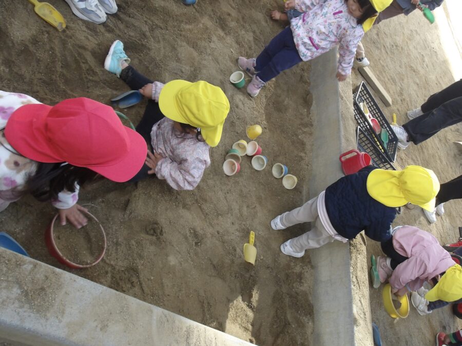 今日はお外でお砂場でたくさん遊んでいる姿が見られました