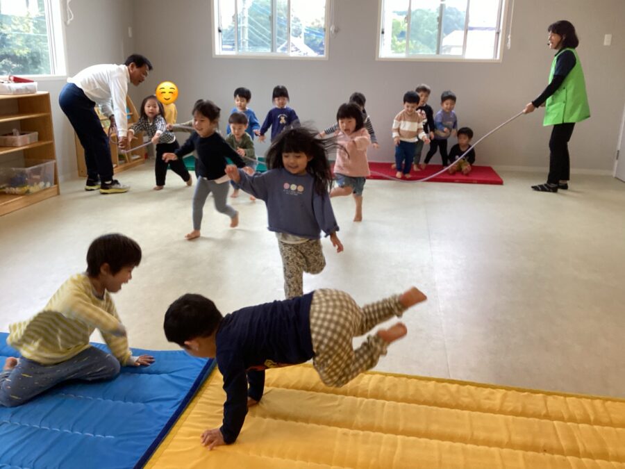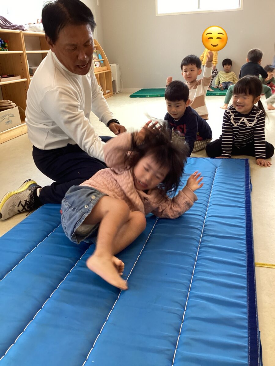 その後はうさぎ組さんは体操教室でおむすびころりんチャレンジ(でんぐり返し)をしたり、