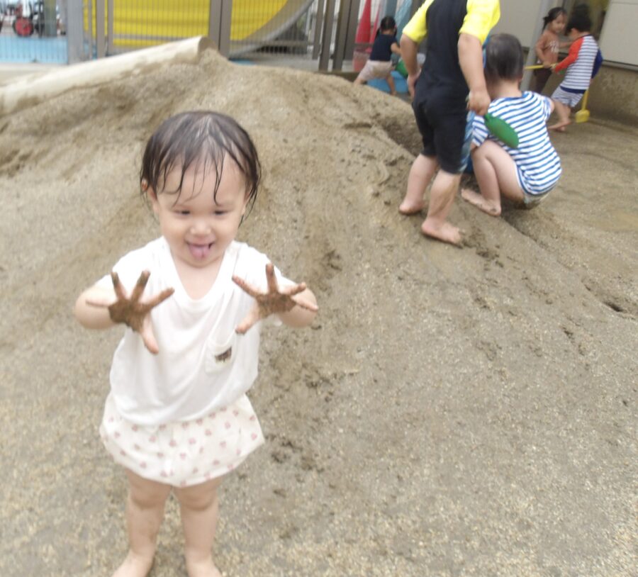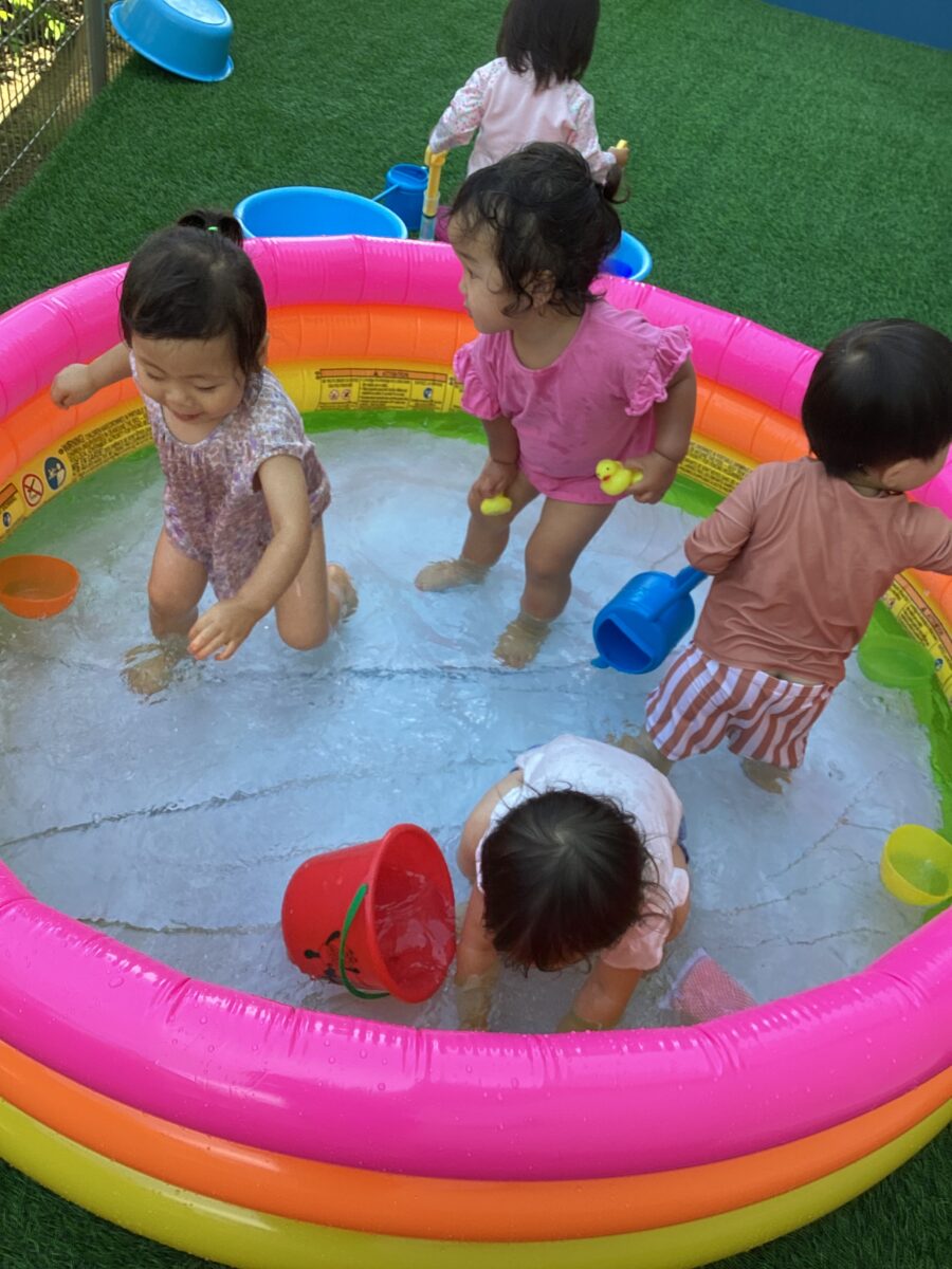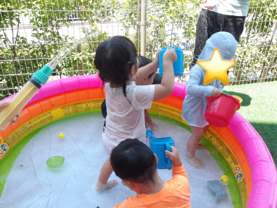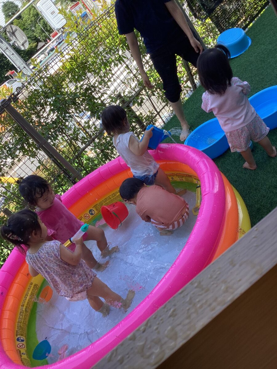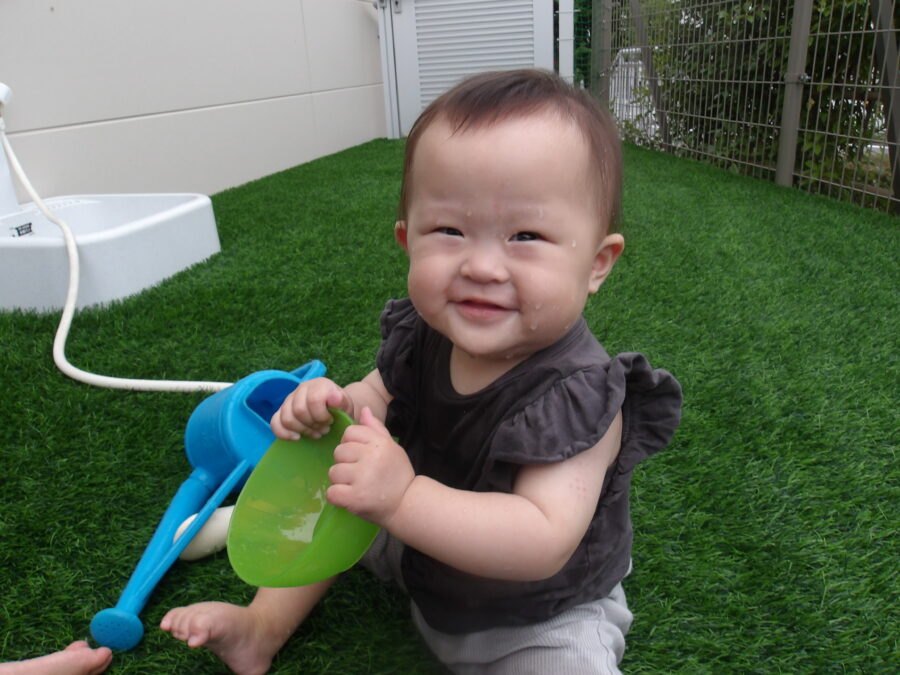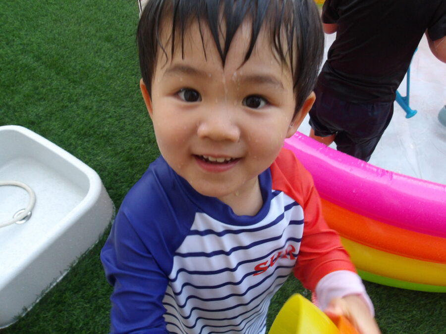 その後は水遊び!だんだん慣れてきてにこにこ笑顔で遊べたひよこさんでした![]()