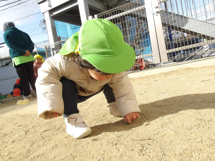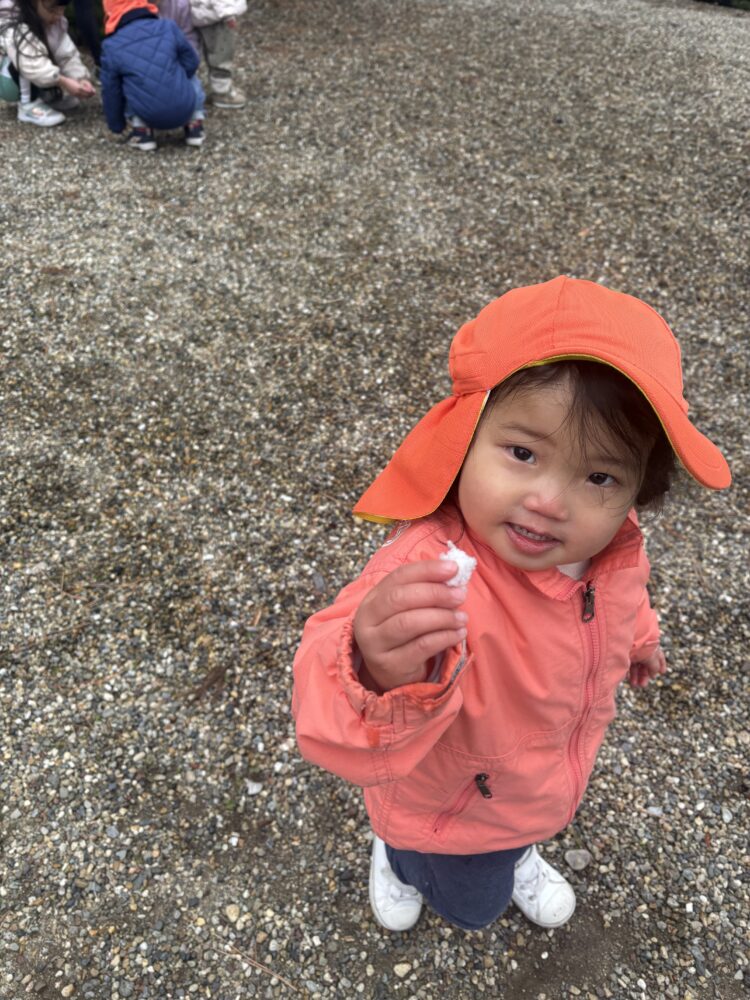小石を拾って保育士に持ってきてくれました![]()
