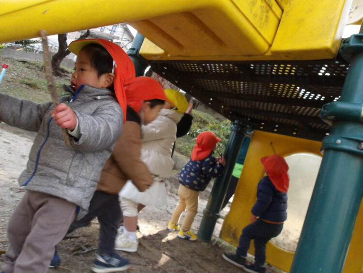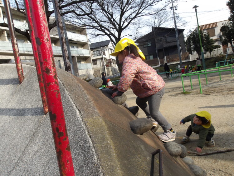 山に登って滑って遊んだり、遊具で遊ぶ姿が見られました!