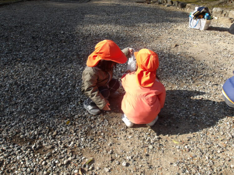 たくさん石を集め皆で一緒の袋に入れたり、