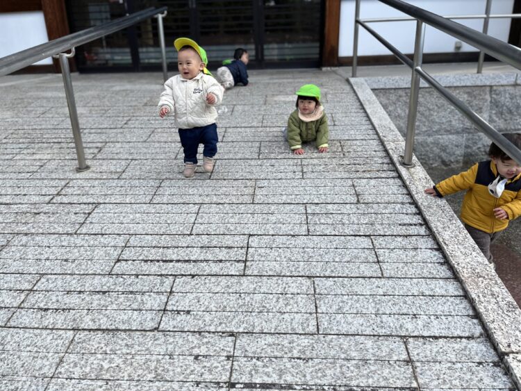 舎利殿に着くとそのまま手を繋いで一緒に遊ぶ姿や追いかける姿、真似をして一緒に遊ぶ姿もありましたよ☺️