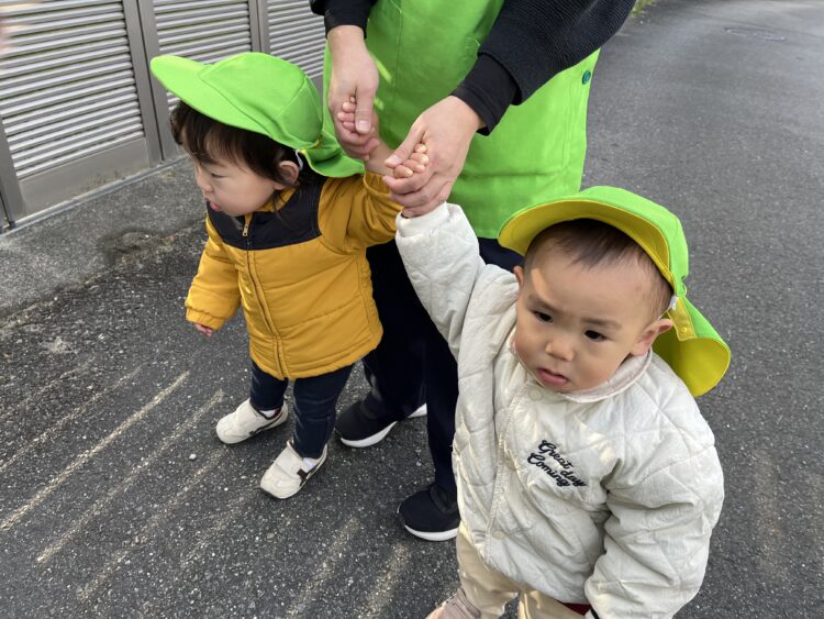 幼児クラスのお友だちに小さいお友だちを連れて行ってくれるか聞いてみると、頼れるお兄さんお姉さんな表情で手を繋いでリードしてくれました🤝