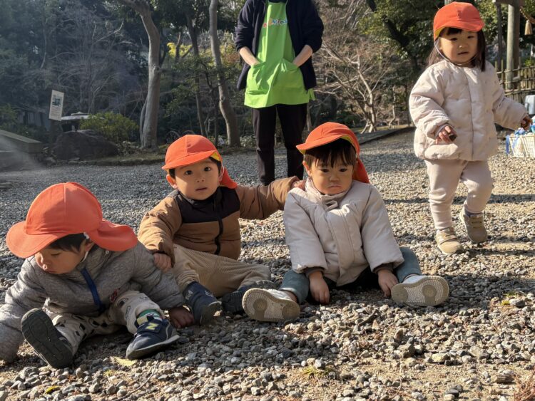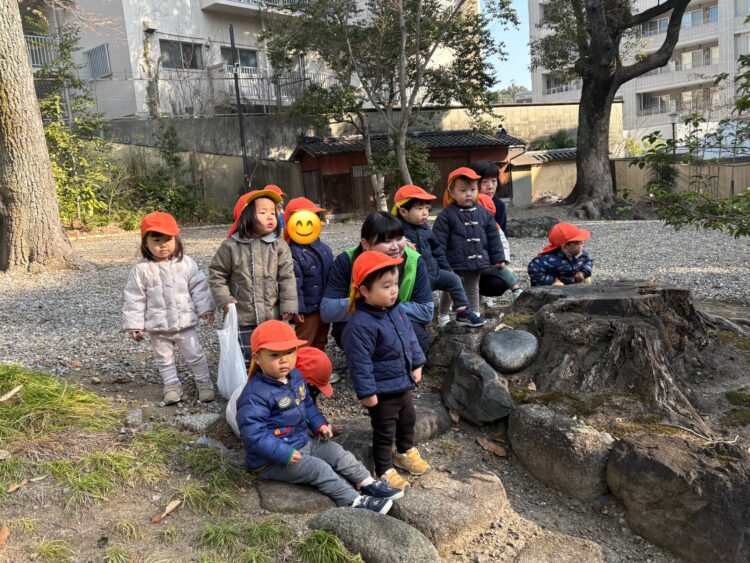 初めは、あひるさんで集まってお名前呼ばれて&返事 と 先生のお話しを聞き、「今日は揚輝荘行きたい人〜!👋🏻」「日泰寺へ行きたい人〜!👋🏻」という先生の質問に手を挙げて多数決で