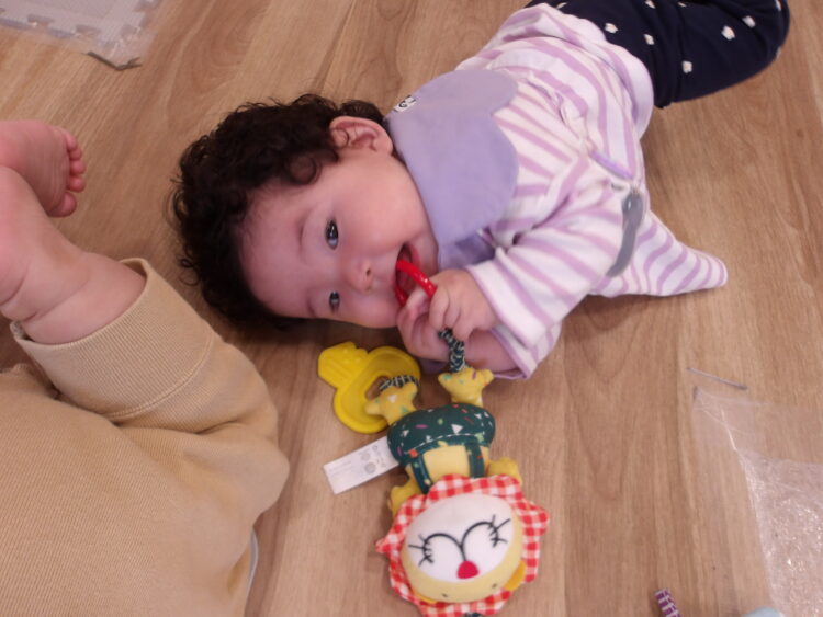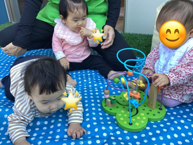 今日はテラスで遊びました ずり這いでいろんな場所に行って楽しんでいましたよおもちゃ遊び楽しいね
