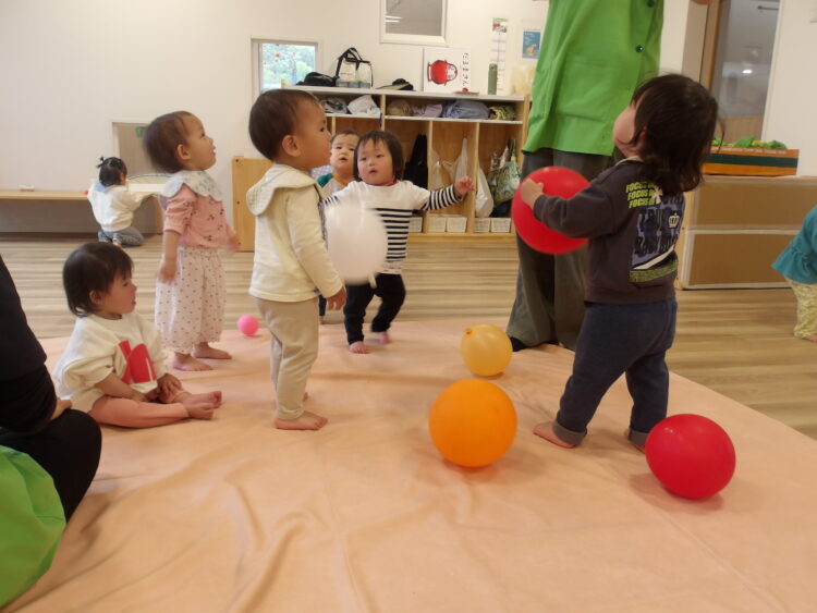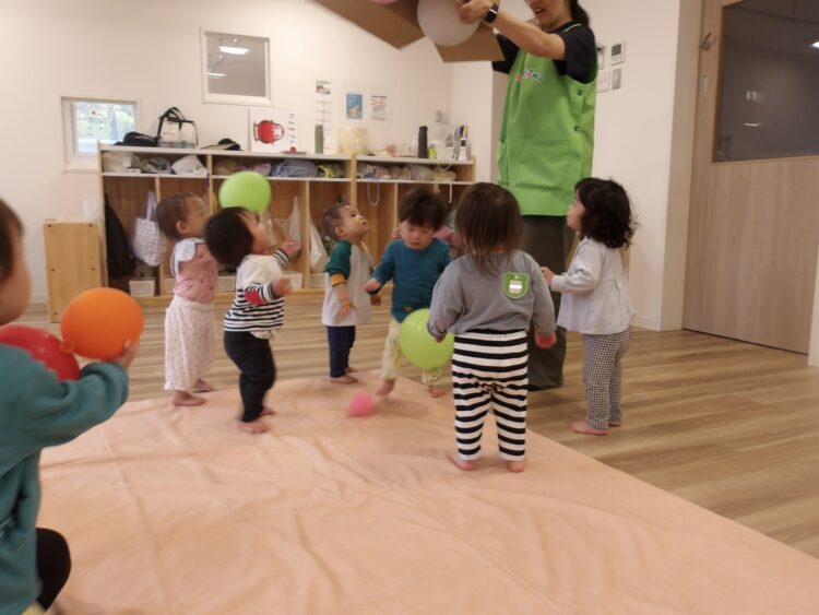 箱をひっくり返すと風船が上から降ってきてみんな喜んでいました😊