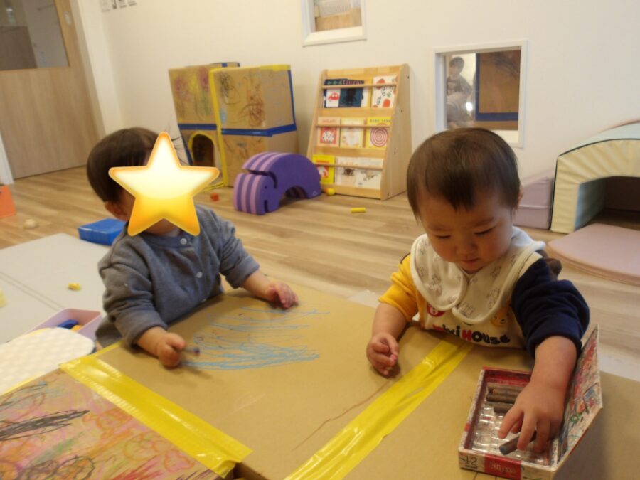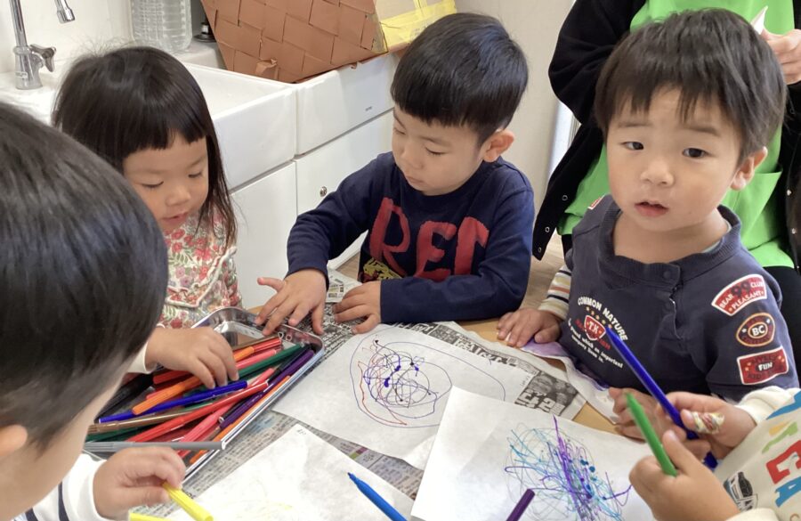 点をたくさん描いたり、自分の好きな色のクレヨンを選んだりと楽しんでいました