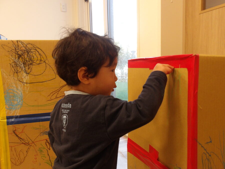 今日のひよこさんはダンボールにお絵描きをして遊びました