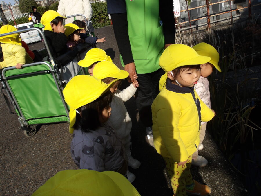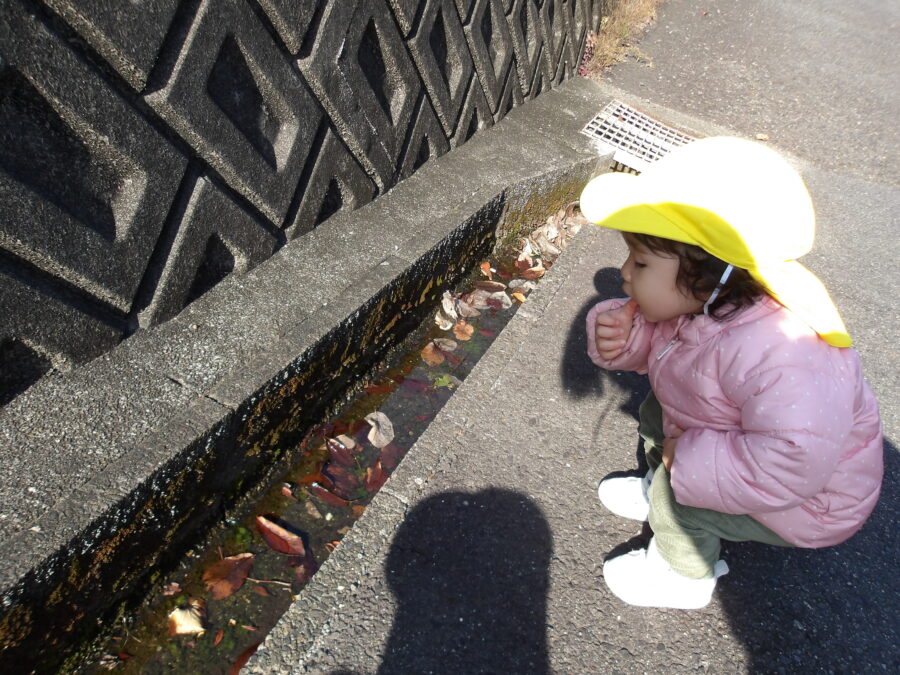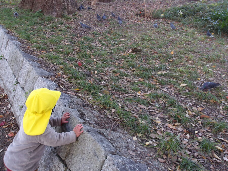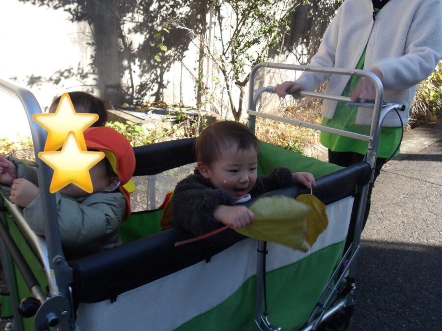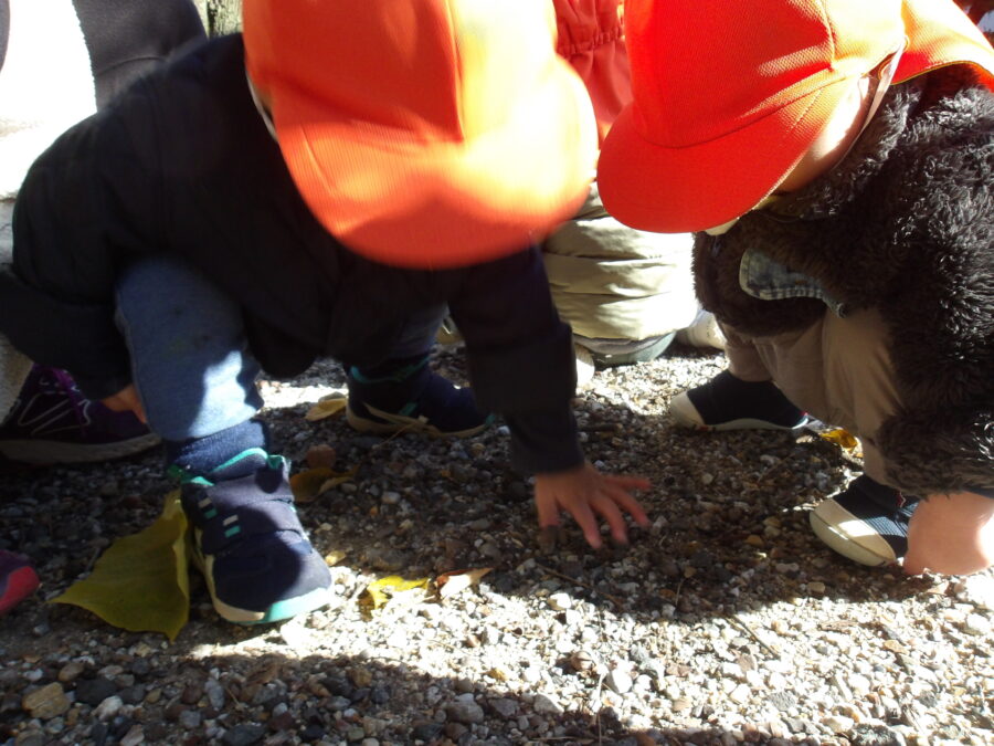 「何かあるかなぁ〜」と覗いていましたよ お地蔵さんの前で頭をペコペコご挨拶もできるひよこぐみさんです 葉っぱを見つけてフリフリ今週もたくさんお外で遊べて楽しかったね段々と寒くなってくるので、体調崩さないように元気いっぱいで保育園に来てね