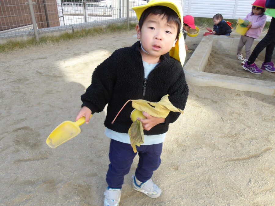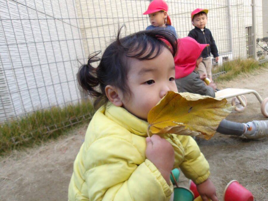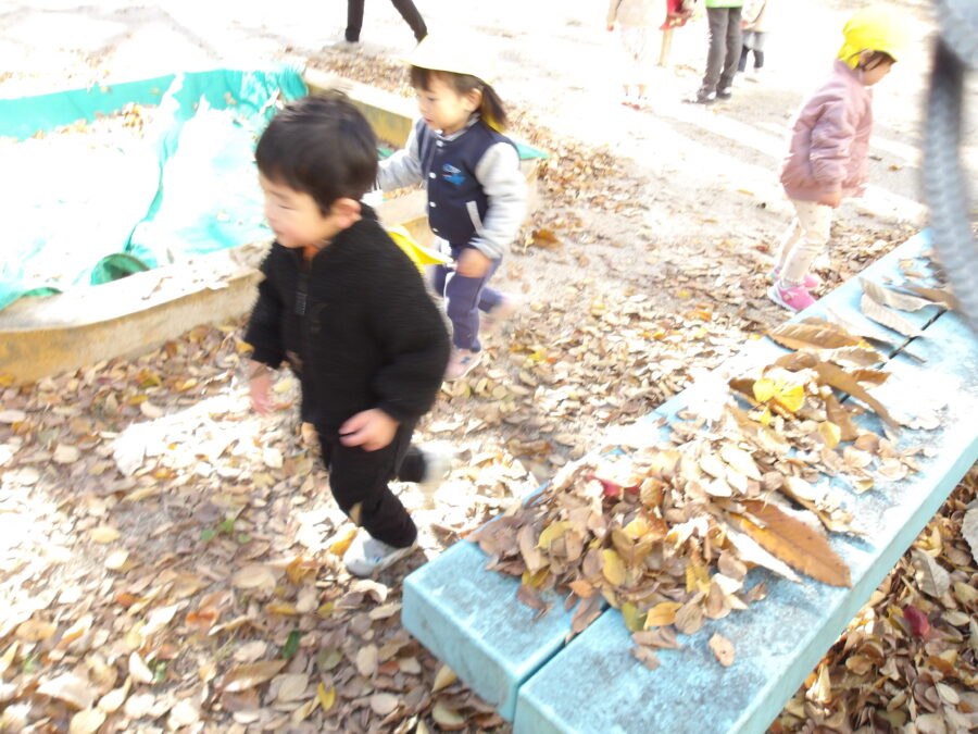 落ち葉がたくさんあって踏みしめたり、葉っぱを拾っていましたよ。