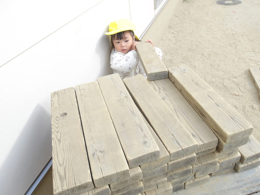 帰ってきてうさぎ組さんと合流し、お外で遊ぶ子とお部屋で遊ぶ子分かれました!葉っぱ、たくさんだね