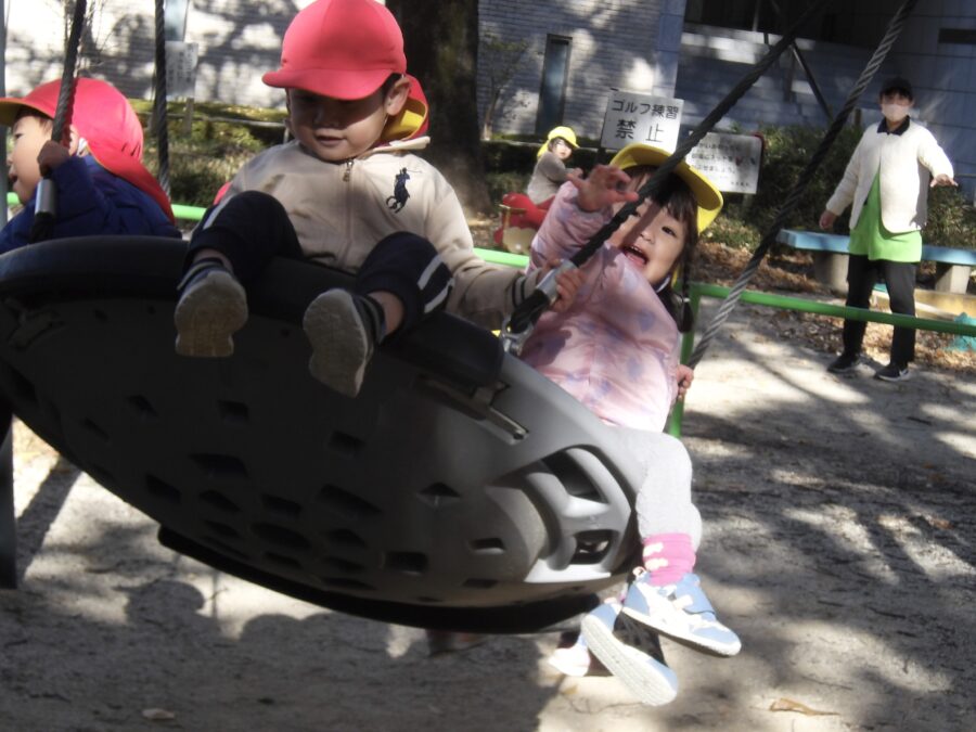 ひよこさんは滑り台やブランコなどの遊具にも挑戦しましたよ