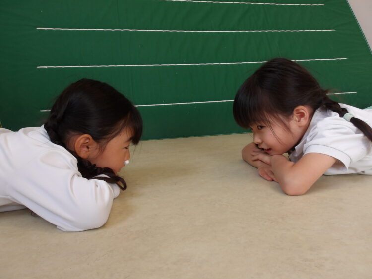2人組になって、どっちが先に起き上がれるかも競走しました!