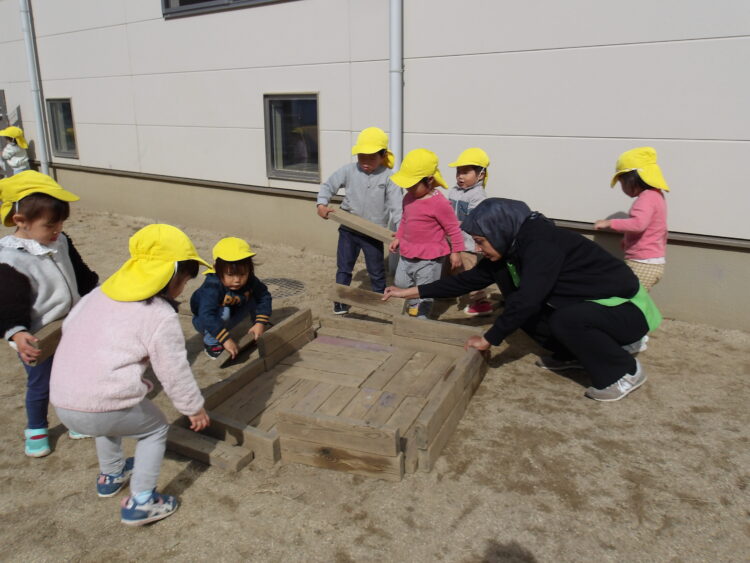 できた家でおままごとをしたり、パーティーをして遊ぶ姿が見られました🥰