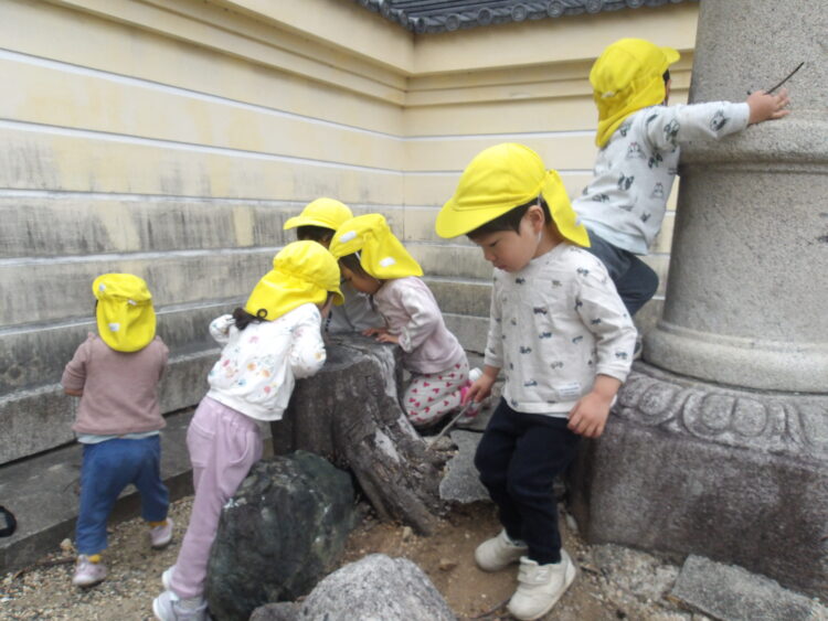 今日はひよこ組さん、あひる組さん、うさぎ組さんで舎利殿にお散歩に行きました!