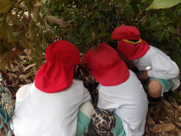 木の周りに集まったり、少し登ってままごと遊びや秘密基地に見立てて遊ぶ様子がありました🏠