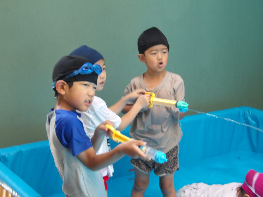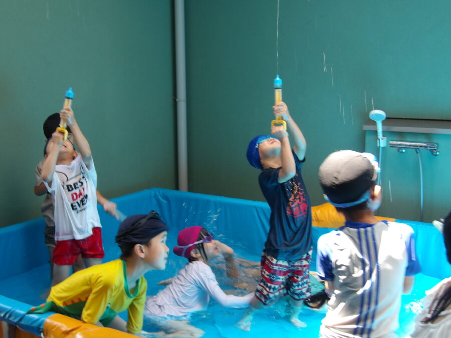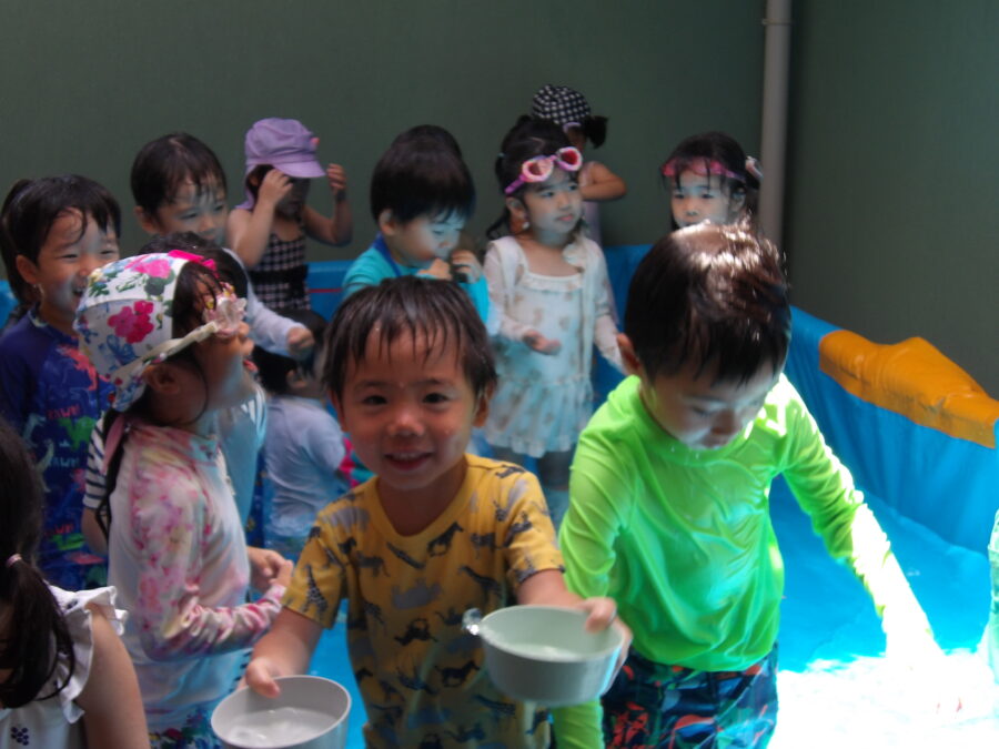 そら組さんとたいよう組さんで水遊びをしました![]()