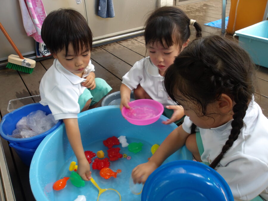 水遊びに慣れてきた子どもたちは、より活発に水に触れていましたよ![]()