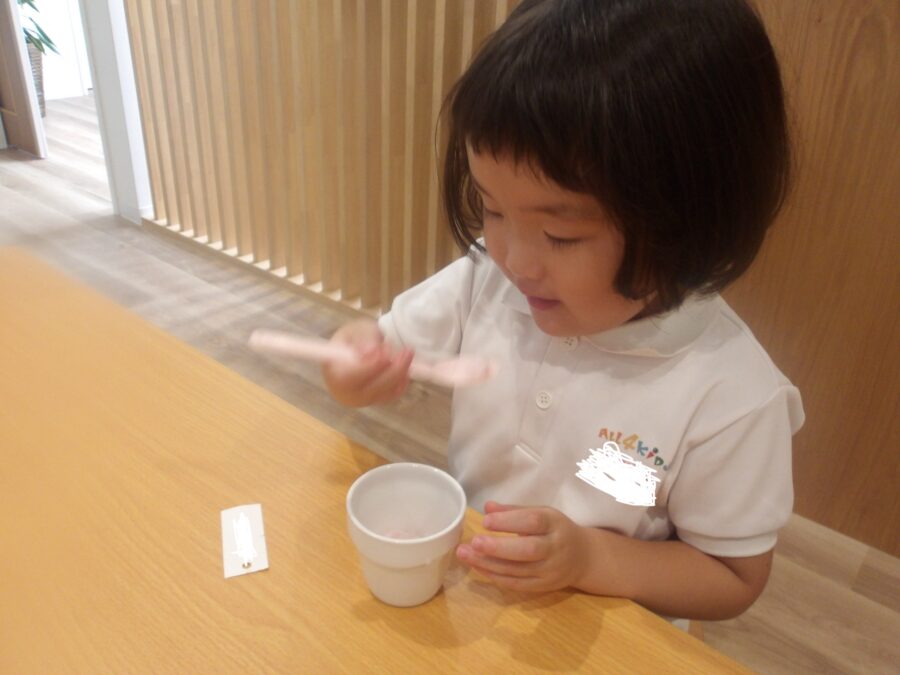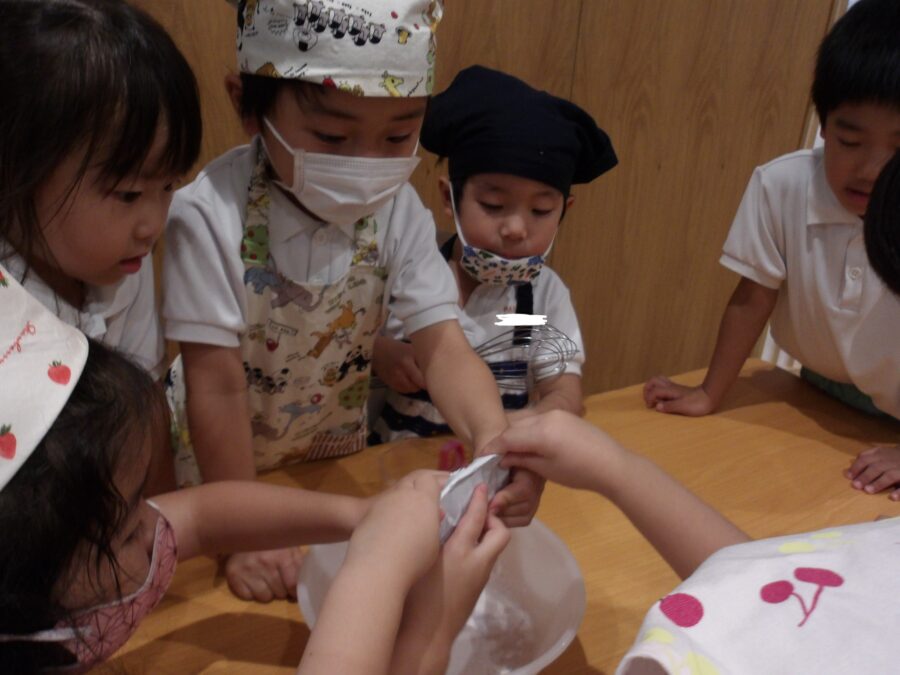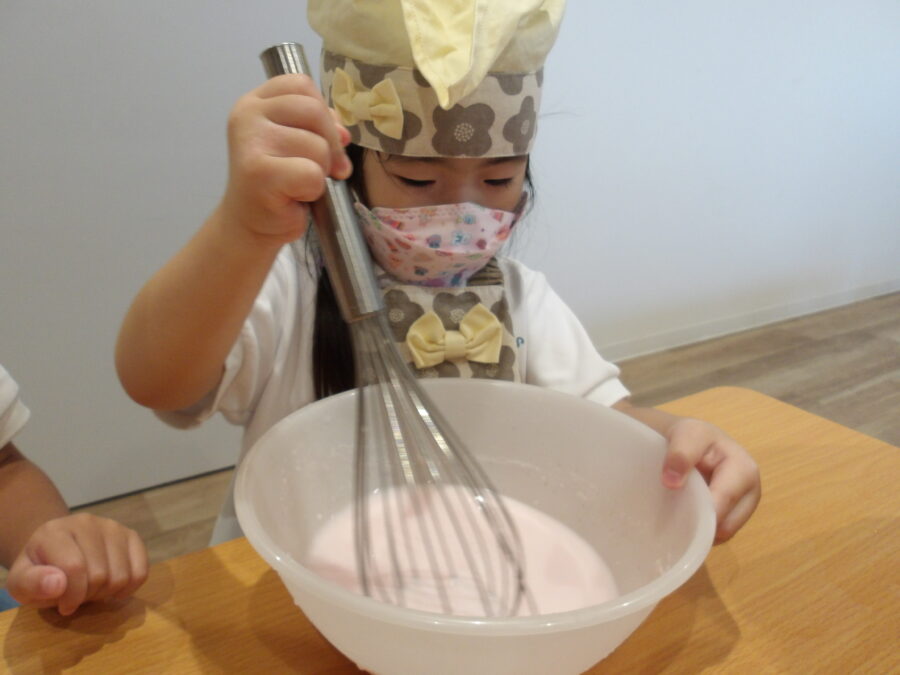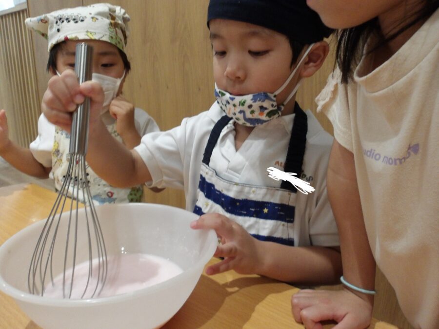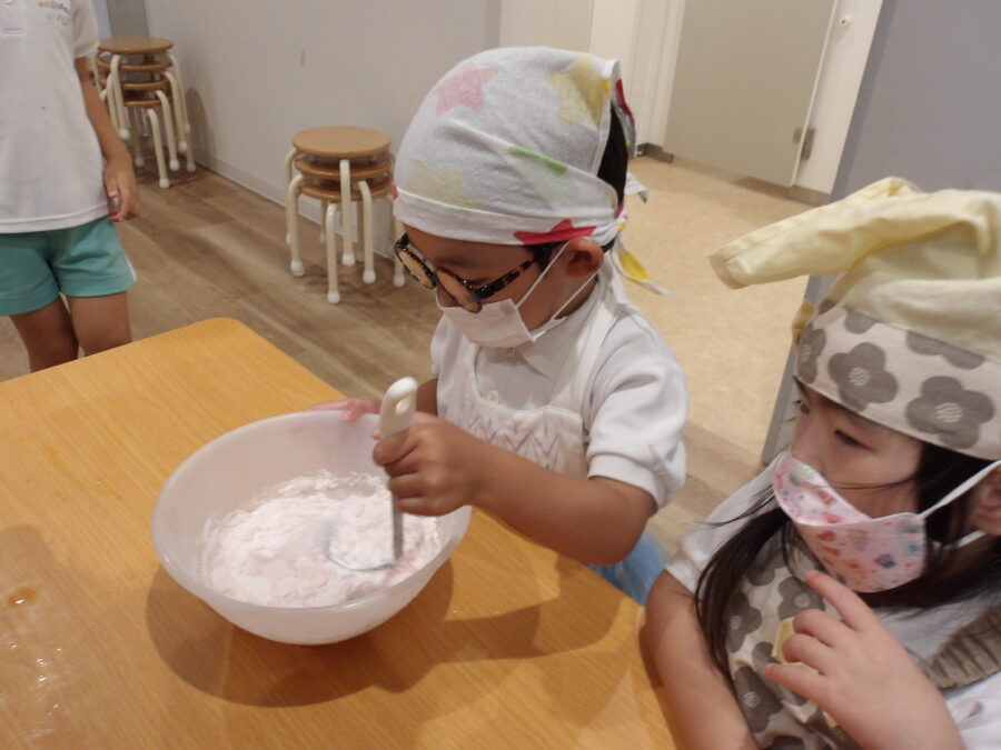 ボールにお水と粉を入れてみんなで混ぜ混ぜ!!!