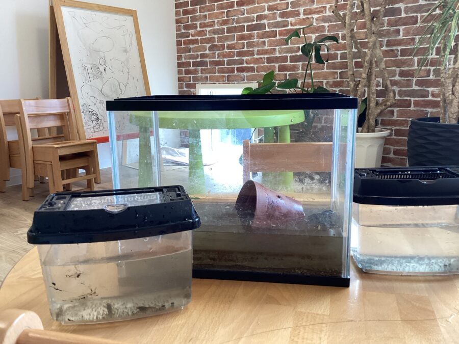 新しいザリガニたちのお家を作りました![]()