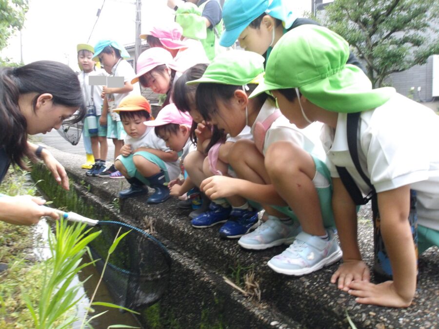 今回はそら、にじ、たいようの組のザリガニ探検隊希望の子どもたちで