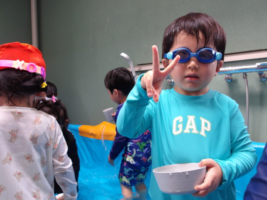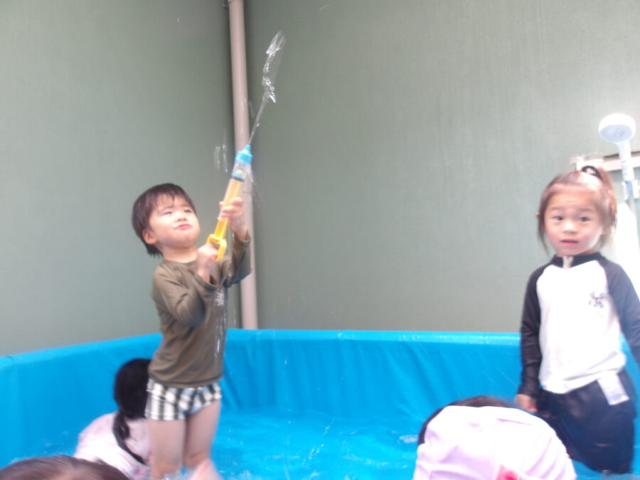 今日の水は冷たかったので「冷た〜い!」と言う子もいました![]()