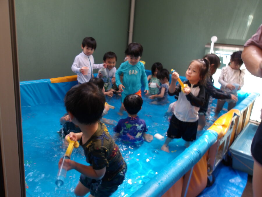 そら組、にじ組、たいよう組でクラスごとにプール遊びをしました!
