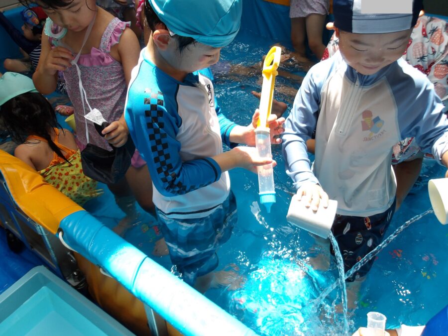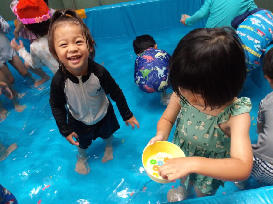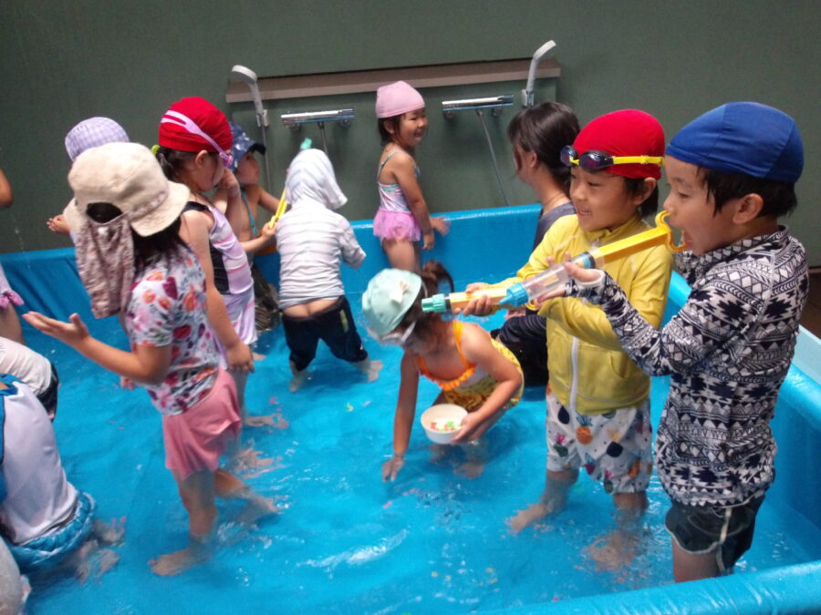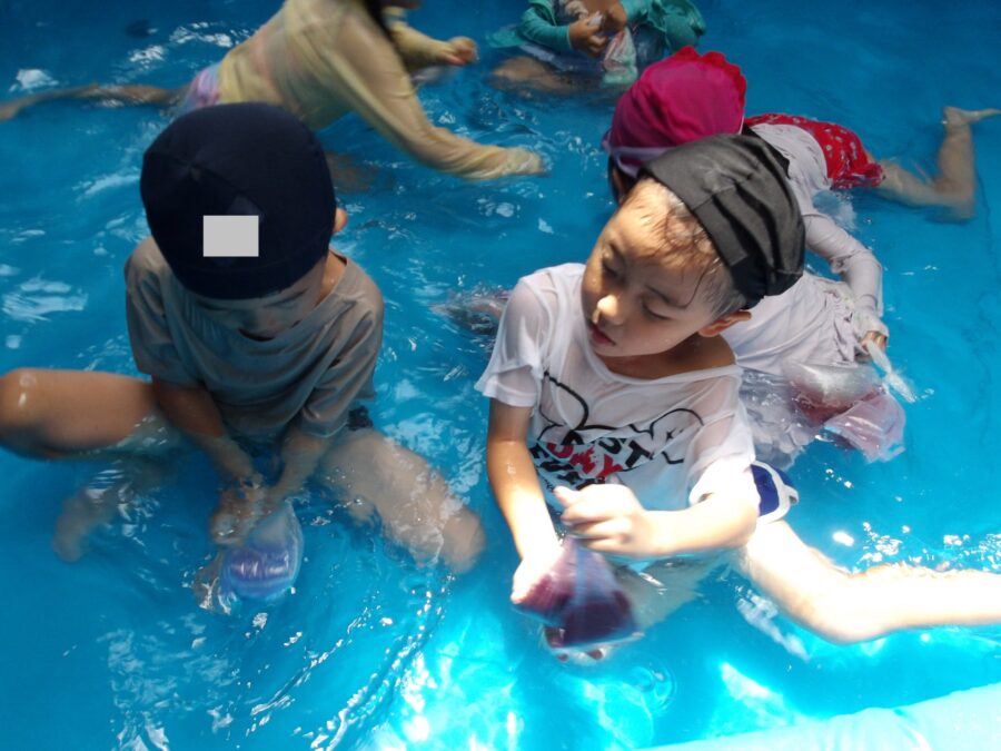 水に慣れてきた子どもたちは、おもちゃでままごとをして遊んだり