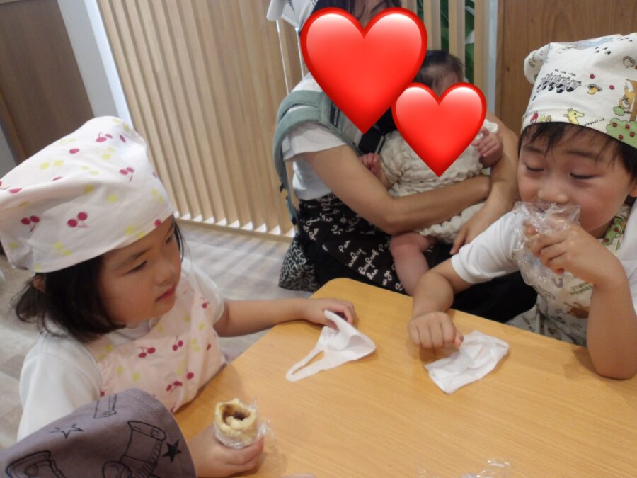 おさかなソーセージとチーズのベビーカステラも、チョコレートを入れた甘いベビーカステラもどちらもとっても美味しくて、口に入れるたびに笑顔になる子どもたちでした![]()