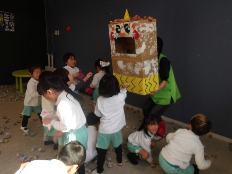 先生たちのクイズや節分の歌で盛り上がったあと、