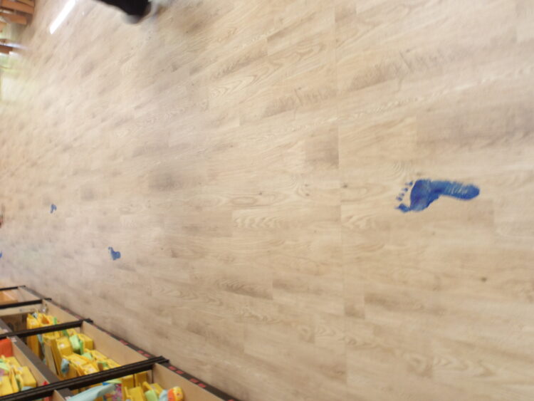廊下を見ると何やら大きな足跡👣