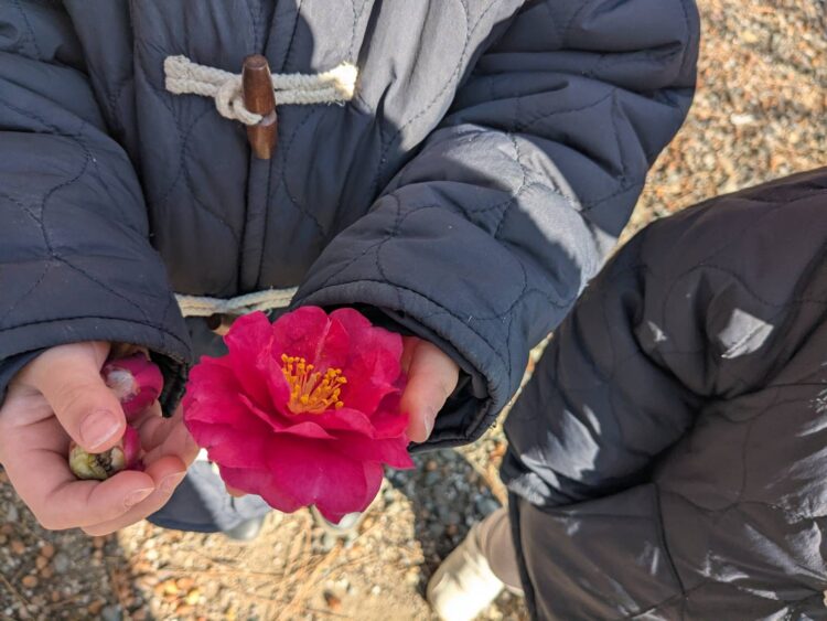 「椿のお花も見つけたよ🎶」