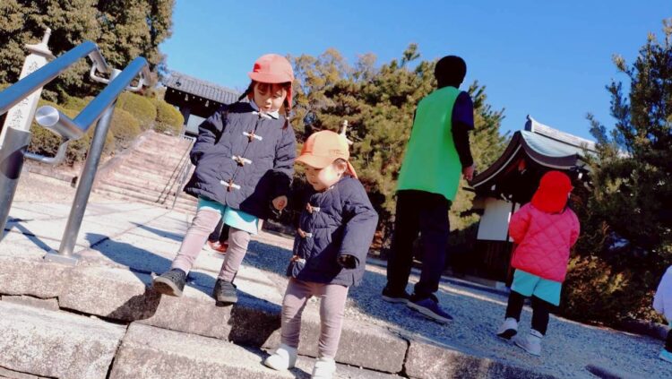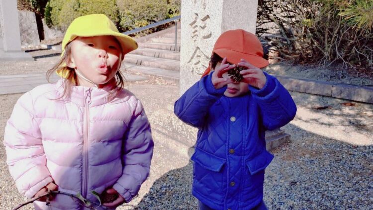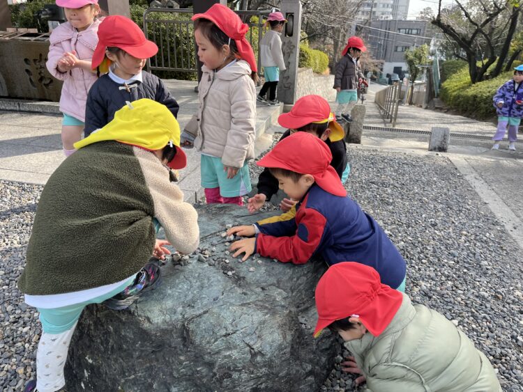 目的地の日泰寺では鬼ごっこをしたり、石を集めて見たて遊びをして楽しむ姿がありました☺️
