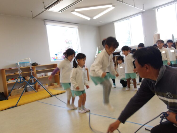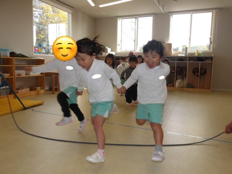 そら組さんは3人1組になって大縄に当たらない様に走ったり、ジャンプをしました!