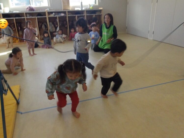 タイミングよくジャンプして走り抜けていました!上手に飛べて先生やお友だちとハイタッチをする姿が見られました🙌🏻