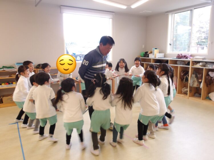 最後はみんなで縄を引っ張って体操の先生を囲んでいました!