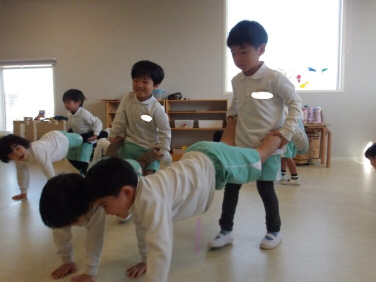 にじ組さんは2人1組になって手押し車に挑戦!