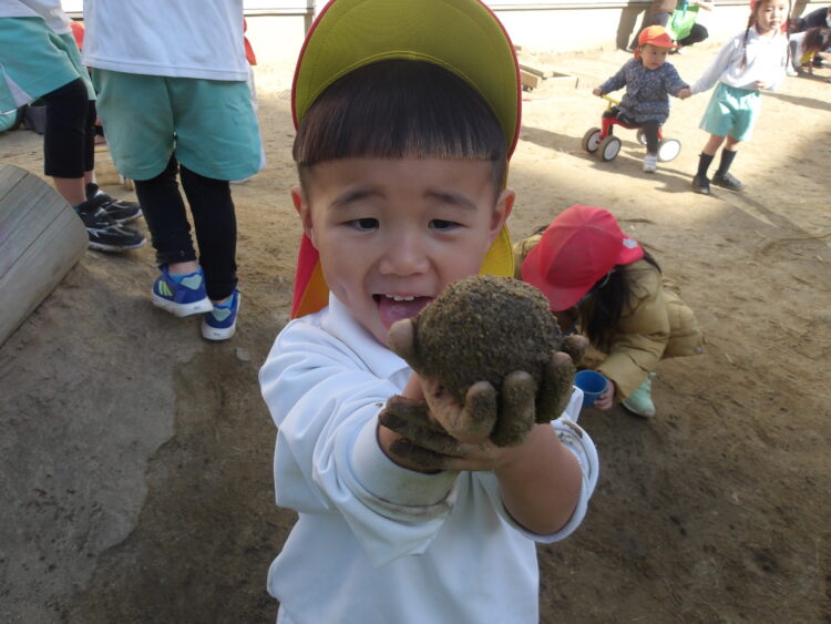 園庭では、泥団子を作ったり三輪車をしたり、鬼ごっこなどいろんな遊びを楽しんでいました![]()