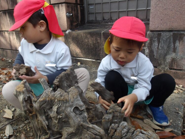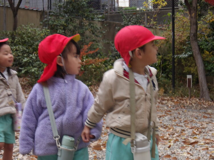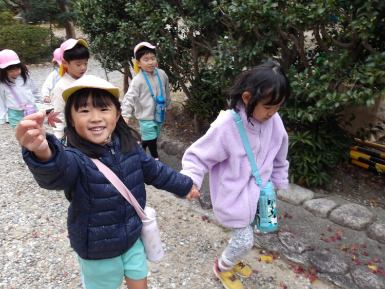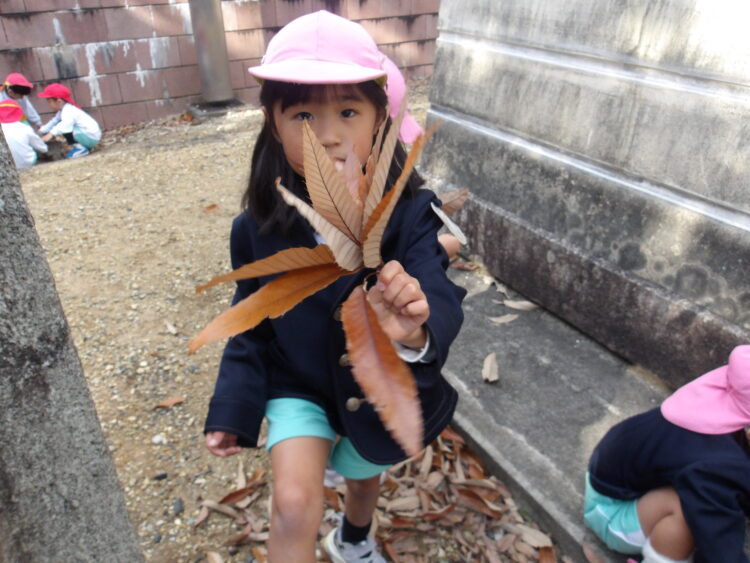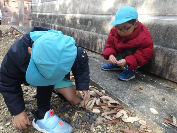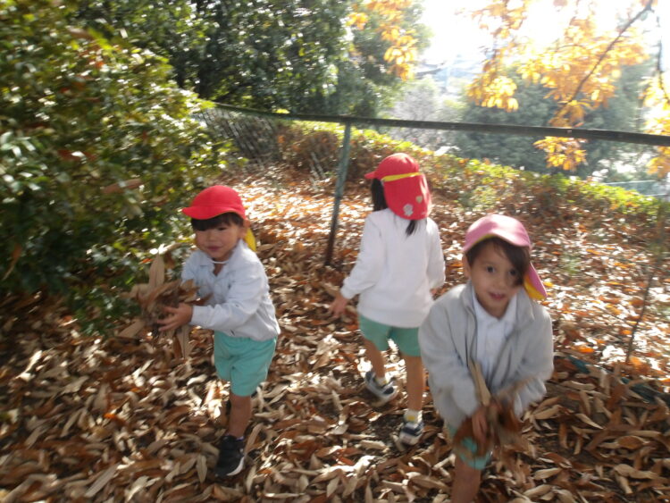 風に吹かれて木の葉が舞うと「わー!」と嬉しそうにしていた子どもたち。