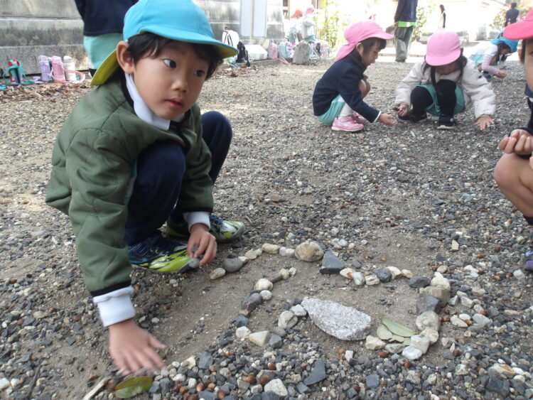 石を並べて形を作り、楽しんでいる子もいました!