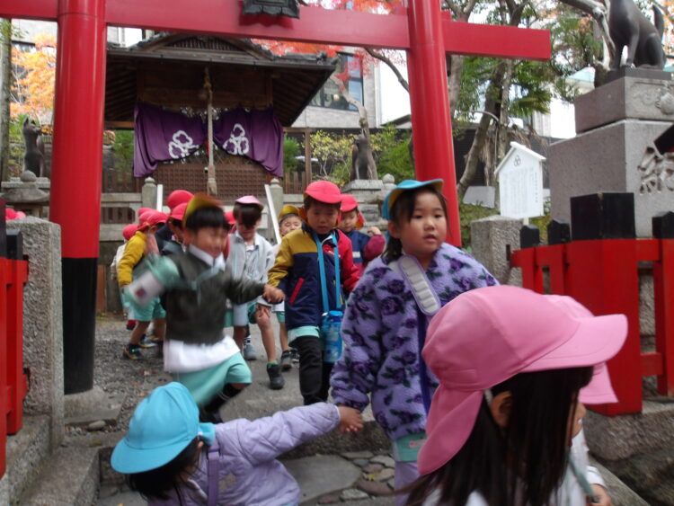今日はそら組、にじ組、たいよう組のみんなで舎利殿へ行きました!