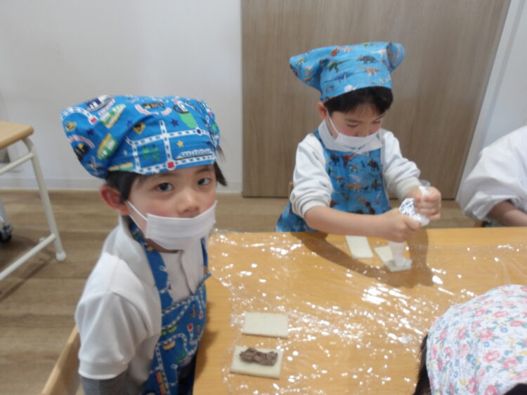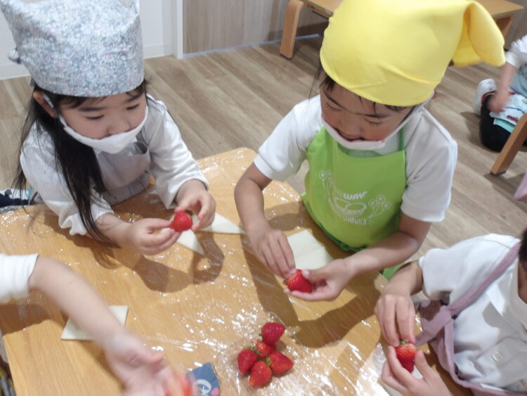 「美味しい〜」「〇〇ちゃんは何を入れたのー?」「見て、ここにいちごが見える